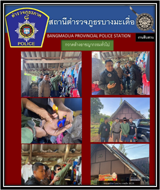 – ได้มีการจับกุมตัวผู้ต้องหา กระทำผิด ตาม พ.ร.บ.อาวูปืนฯ จำนวน 1 ราย ผู้ต้องหา 1คน พร้อมด้วยของกลาง อาวุธปืนยาว(อัดลม) จำนวน 1 กระบอก  นำส่งพนักงานสอบสวนดำเนินคดี