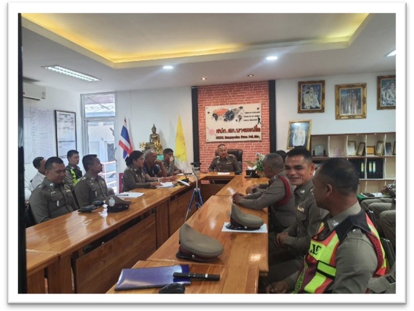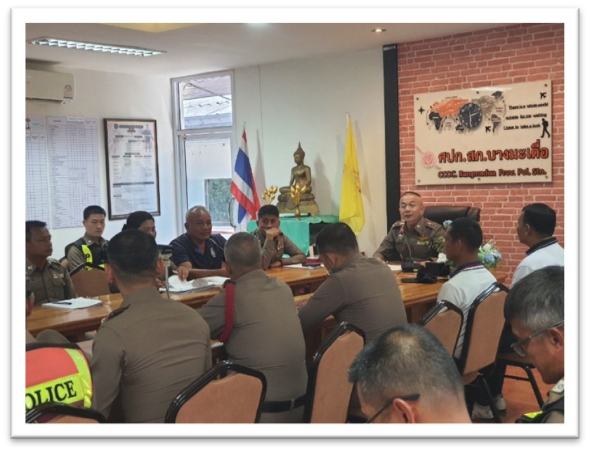 เมื่อวันที่ ๒๕ ธันวาคม ๒๕๖๗ เวลา ๑๐.๐๐ น. ณ ห้องประชุม ศปก.สภ.บางมะเดื่อ พ.ต.อ.วีระพันธ์ เกื้อรักษ์ ผกก.สภ.บางมะเดื่อ ได้เชิญข้าราชการตำรวจในสังกัดทุกนาย เข้าร่วมประชุมขับเคลื่อนการปฏิบัติหน้าที่เพื่อเตรียมความพร้อมในช่วงเทศกาลปีใหม่ ๒๕๖๘ โดยกำชับการปฏิบัติ ดังนี้