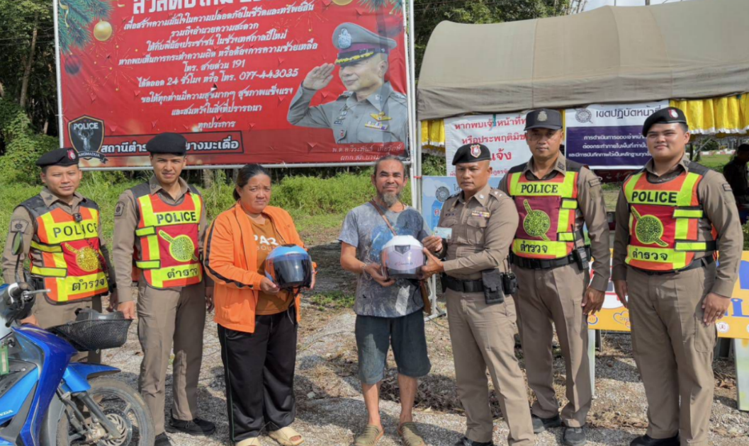 เมื่อวันที่ 4 มกราคม ๒๕๖๘ เวลา ๑๕.o๐ น. ตำรวจภูธรจังหวัดสุราษฎร์ธานี สภ.บางมะเดื่อขอรายงานผลการปฏิบัติกิจกรรมจิตอาสาจราจร โครงการจิตอาสาจราจร รณรงค์การขับขี่ปลอดภัย สวมหมวกนิรภัย เพื่อลดอุบัติเหตุจราจรทางบก ในช่วงเทศกาลปีใหม่ พ.ศ.2568 สถานที่ > จุดตรวจหน้า สภ.บางมะเดื่อ ต.บางมะเดื่อ อ.พุนพิน จ.สุราษฎร์ธานี ผู้ปฏิบัติ > ภายใต้การอำนวยการสั่งการของ พ.ต.อ.วีระพันธ์ เกื้อรักษ์ ผกก.สภ.บางมะเดื่อมอบหมายให้ พ.ต.ท โกนิตย์ เกื้อสกุล รอง ผกก.ป.สภ.บางมะเดื่อ , พ.ต.ท.ธงชัย ทองใหญ่ สวป.สภ.บางมะเดื่อ พร้อมด้วยร้อยเวร 2-0 สายตรวจจราจร พร้อมจิตอาสาจราจร การปฏิบัติ > มอบหมวกนิรภัยให้แก่ประชาชนจำนวน 5 ตามโครงการจิตอาสาจราจร รณรงค์การขับขี่ปลอดภัย สวมหมวกนิรภัย เพื่อลดอุบัติเหตุจราจรทางบก ในช่วงเทศกาลปีใหม่ พ.ศ.2568 เพื่อให้ประชาชนผู้ได้รับหมวกนิรภัยได้ร่วมเป็นจิตอาสาจราจร ช่วยประชาสัมพันธ์ในการตระหนักถึงความสำคัญของการสวมหมวกนิรภัยให้แก่บุคคลในครอบครัว และบุคคลที่ใกล้ชิดต่อไป ผลการปฏิบัติ >เป็นไปด้วยความเรียบร้อย มีความพึงพอใจจากผู้ที่ได้รับหมวกนิรภัย ตามโครงการฯ